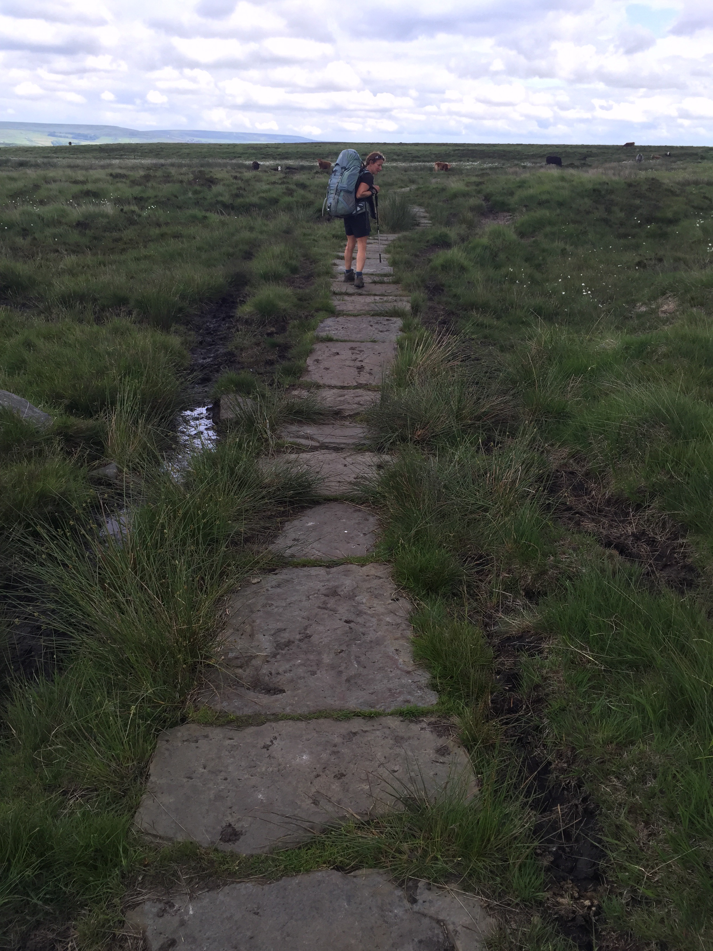 The PW footpath over the fells is mostly laid with flagstones which makes for easier walking than wading through the underlying peat bogs.
