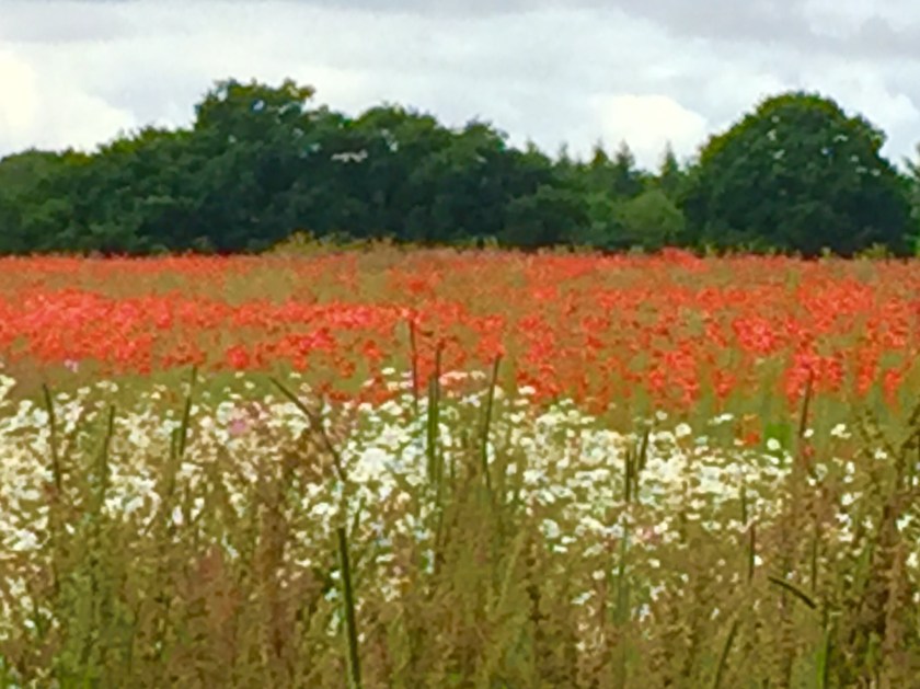 Yesterday the photo of the poppies was appreciated and appropriate given the Battle of the Somme commemorations, so we have included another photo of a field we passed today.