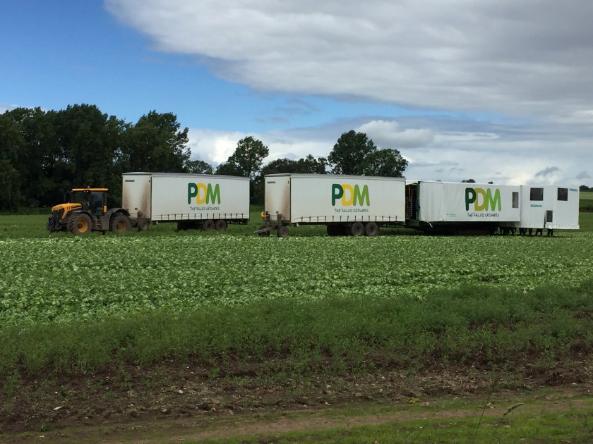 The scenery changed from grazing and cereal crops to more fruit, vegetables and salad crops. We watched a white cabbage picking operation crawling over the crop – picking and packing on the go.