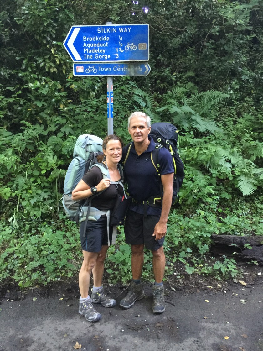 Thanks to Bal for putting us up for 2 days and running us about. We left Steve’s Dad’s and headed towards the Severn Way along the Silkin Way which is right outside Dad’s front door. The Silkin Way is a footpath and cycle way which uses a disused railway from Telford to Ironbridge and Coalport. When we visit Telford it is our usual running route but today it was our link down to the Severn Valley and Severn Way which will be our route for the next 6 days down to Bristol.
