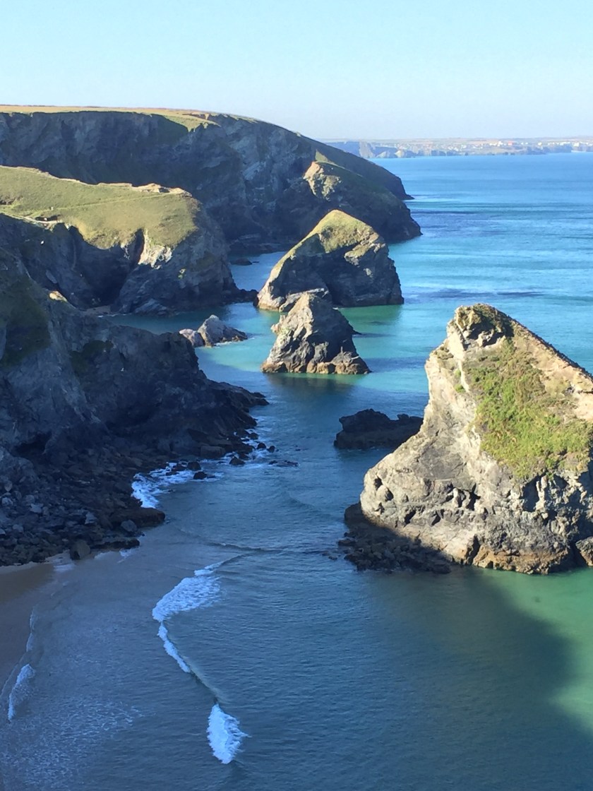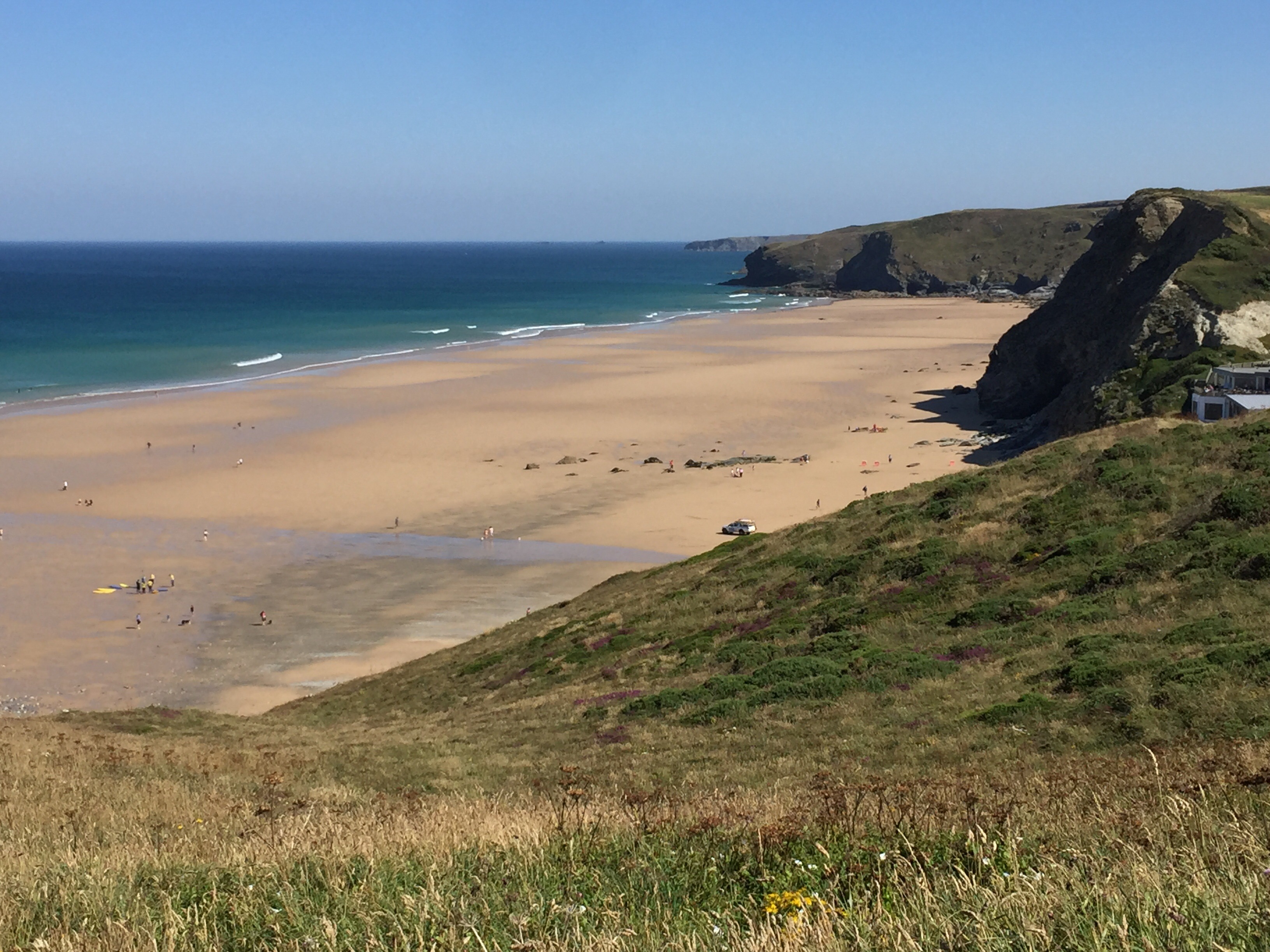 The going is much easier along this stretch of coast. We passed through Porthcothan, Trenance and stopped for tea and a scone (freshly made to a ‘James Martin’ recipe by the proprietor John) at ‘Coasta Cafe’ in Mawgan Porth. They were delicious and light scones. We carried on through Watergate Bay past the posh apartments and Jamie Oliver’s Fifteen Restaurant – although times must be hard for him as the restaurant appears to be in a few Portacabins, another brexit casualty.
