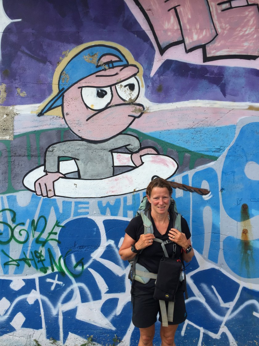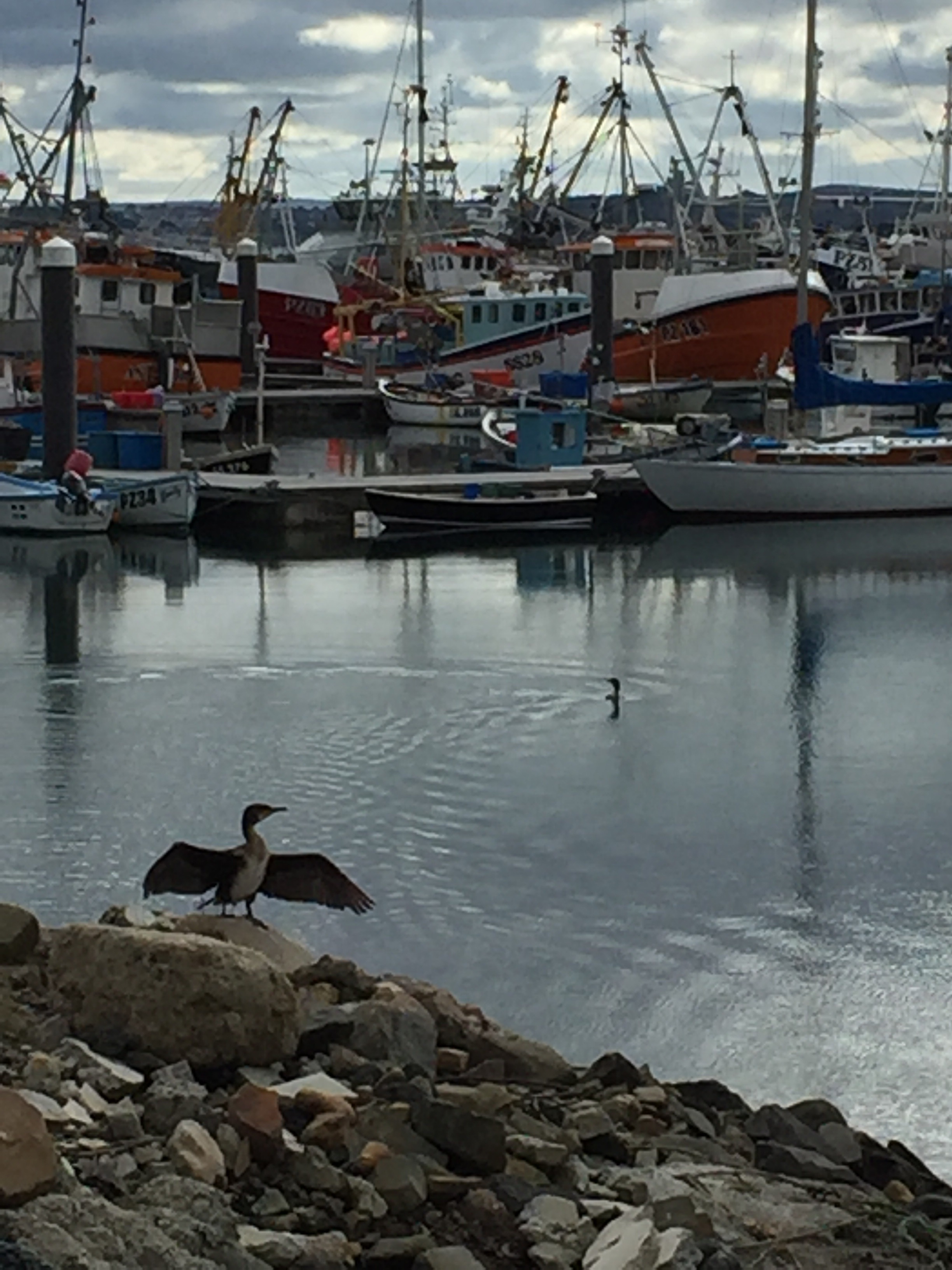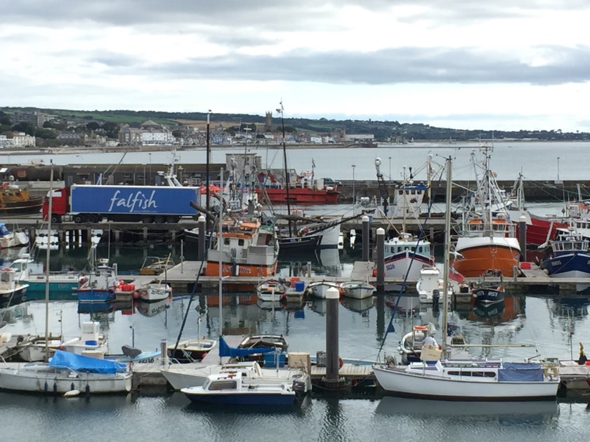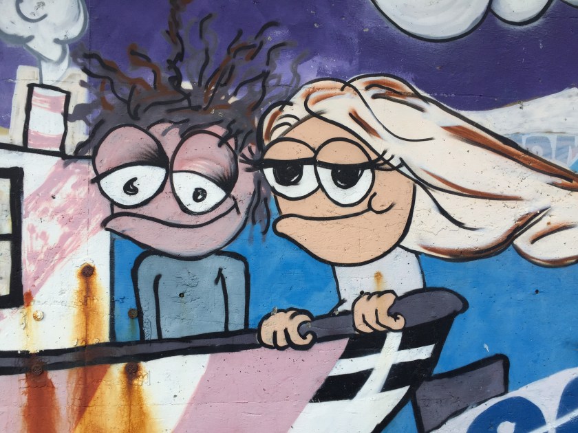 A fine sunny morning for our last day. After a full breakfast we stepped out of the B&B straight onto the coast path and we quickly reached Newlyn to pass the fishing harbour. The local graffiti artist had captured us well.
