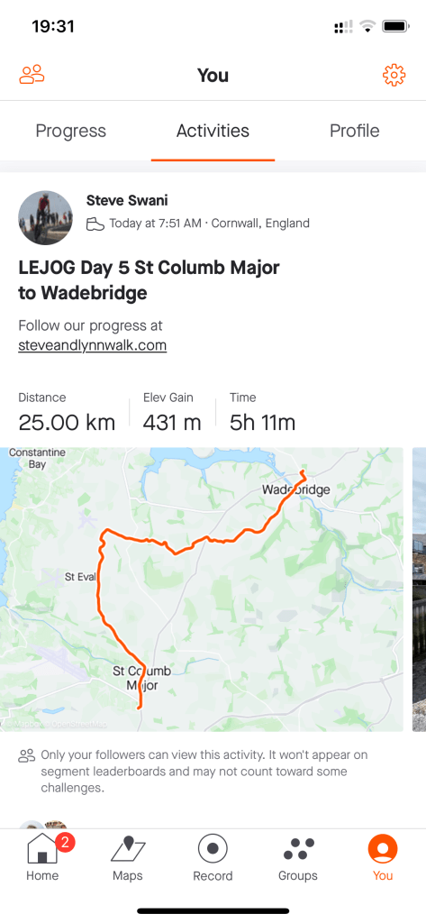 We received a couple of messages via our blog overnight. One from an ex work colleague of Lynn’s, who is starting JOGLE, with her husband today and another from Ryan and Gerri, friends from Exeter who met us at Land’s End with fizz and chocolate cake last time. Disappointingly, they aren’t going to make the same effort to meet and greet us at John O’ Groats this time.