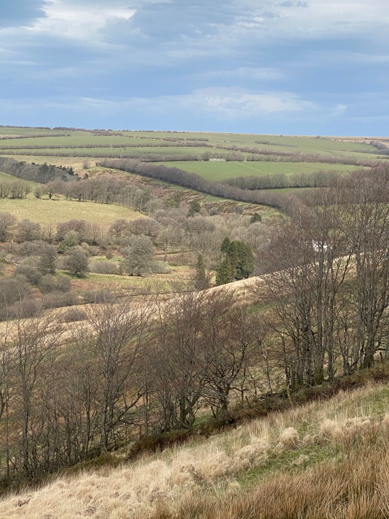 A few long steep climbs with some amazing views behind us to Dartmoor and the North Devon coast as far as Hartland Point. We climb nearly 3200 feet by the end of the day.