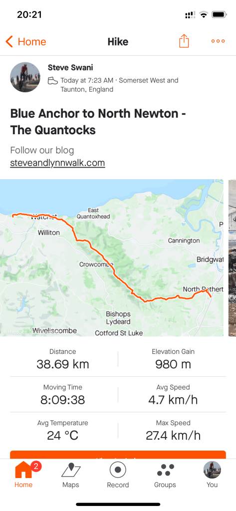 A long climb ‘south’ through the Quantocks, can this be right? A lovely walk with lots to look at, views out to the coast of Wales and the new Hinckley Point C power station, more deer and some really cute cows. The path was busy with other walkers and cyclists.