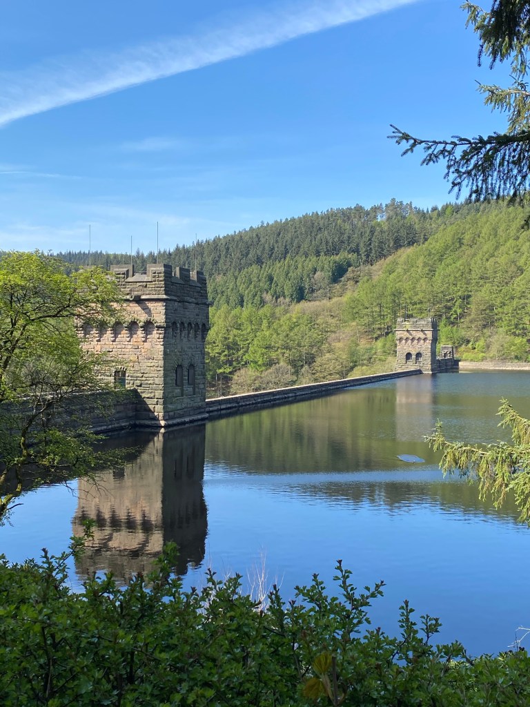 The first part of the walk used a cycle path alongside three reservoirs, Ladybower, Upper Derwent and Howden. The building of Ladybower reservoir resulted in the submergence of two villages Ashopton and Derwent. As recently as 2018 the remains of the former Derwent village were visible during a dry summer. The dam was also used for training by the dam-busters. The scenery was stunning and the path was busy with walkers, runners and cyclists.