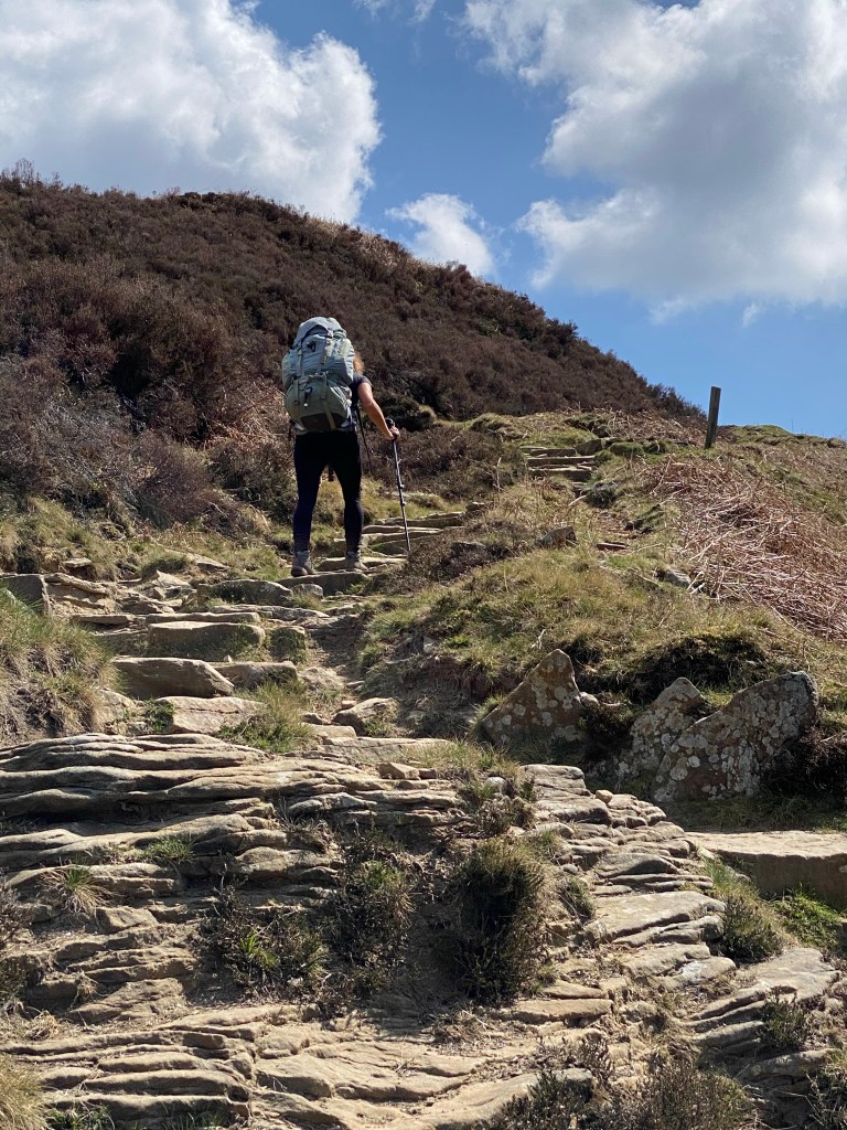 At the end of Howden reservoir a steep climb took us to open moorland and into county number nine, Yorkshire. The path became suitable only for the more skilful (or mad) cyclists. The views were amazing and we could see for miles in every direction.