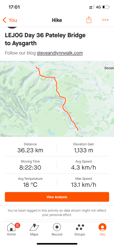 Another uneventful up and over took us to The George and Dragon B & B at Aysgarth.