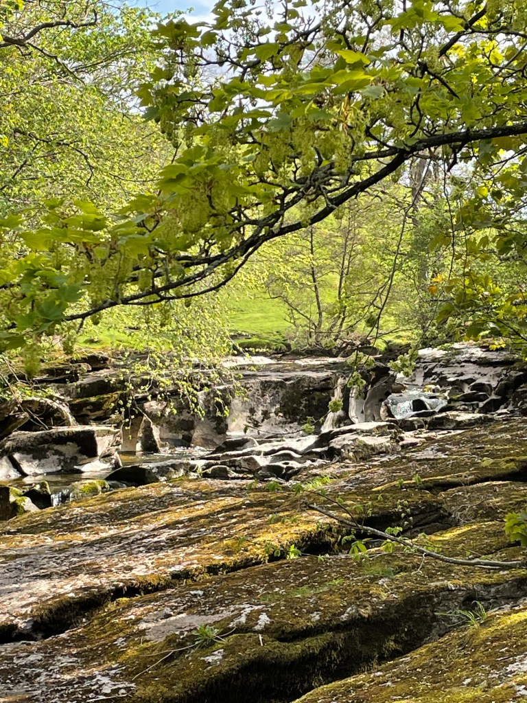 We set off along the River Ure again, a long walk up a valley, first at river level and later high above the valley bottom. The road on the opposite side of the valley was busy with motorbikes. There are amazing views in all directions to which the photos do not do justice.