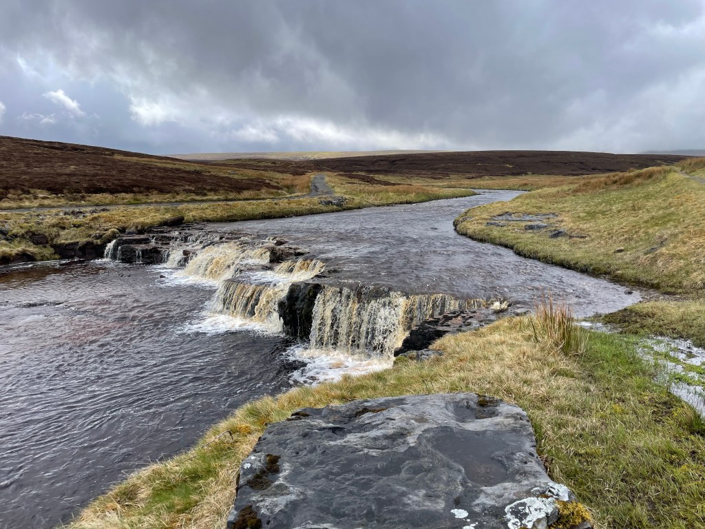 The next 6km was through Moorhouse Upper Teesdale National Nature Reserve, although down hill and along a path it was quite tricky as there were multiple streams to cross and the ground was very boggy in places. We had remarked only a couple of days ago how dry it was in the Yorkshire Dales, with very little water in some of the rivers, this was quite a contrast.