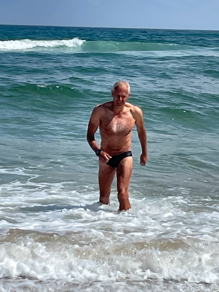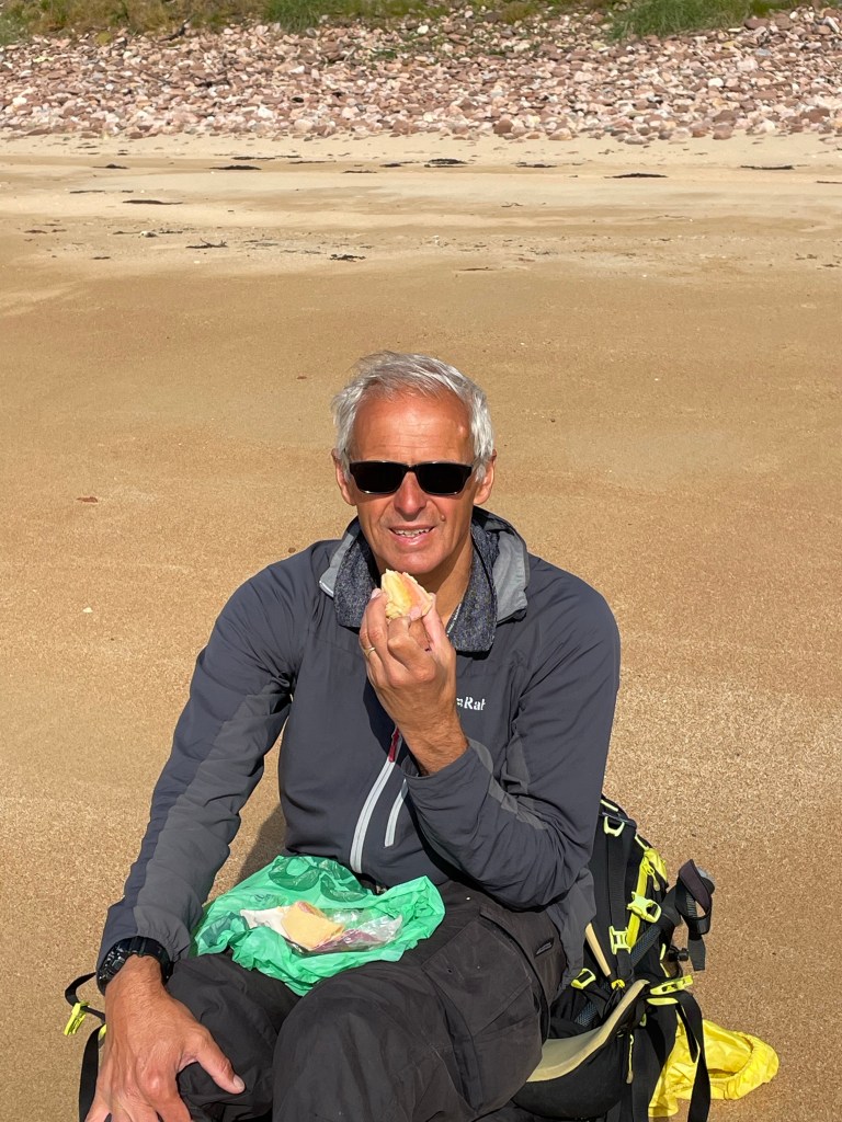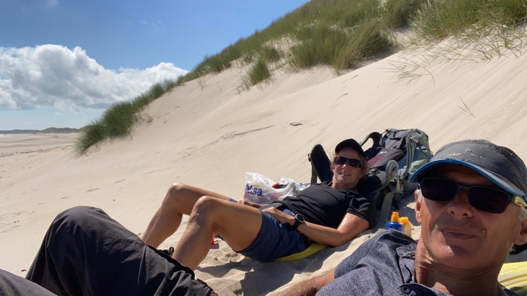 After the river crossing we had plenty of time to spare, so we spent a couple of hours on the beach. We brewed up a couple of hot drinks. Steve went for a swim in the sea. Steve’s idea of a swim looked more like a flash dunk to Lynn.