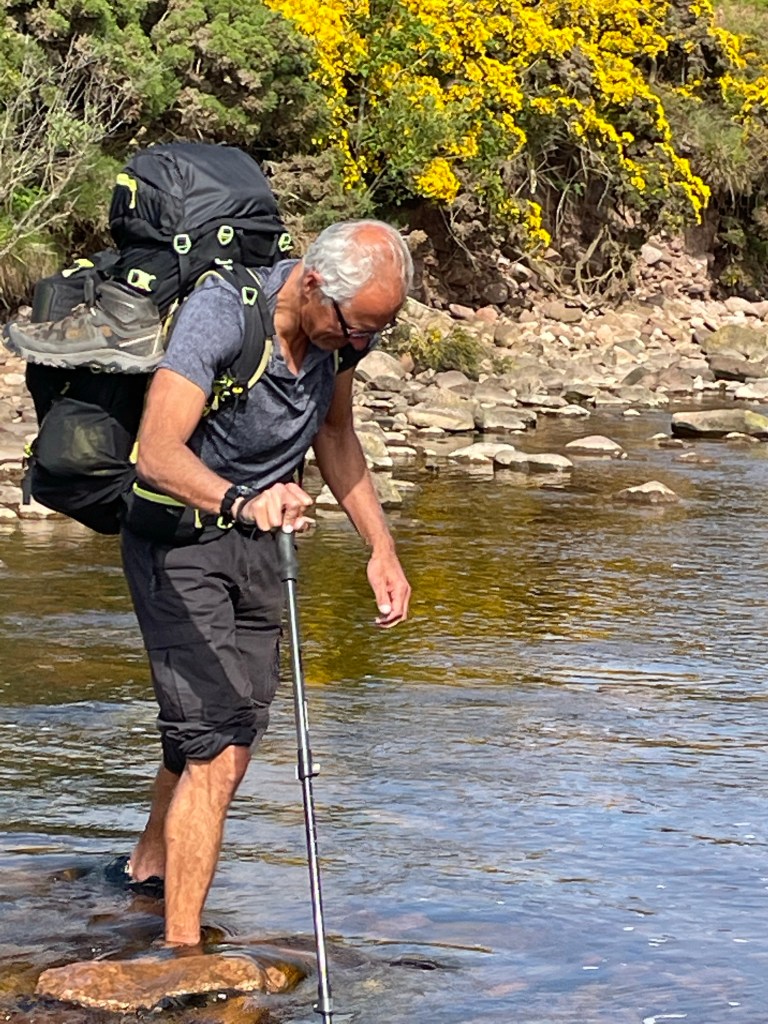 There were a few streams to hop across, which didn’t cause any issues, a bit further on there was a 3 metre wide river to negotiate, Lynn chose to cross in her walking boots while Steve took the more sensible option and changed into his trainers and rolled up his trousers, we both used our ‘old person ’ walking sticks for balance.