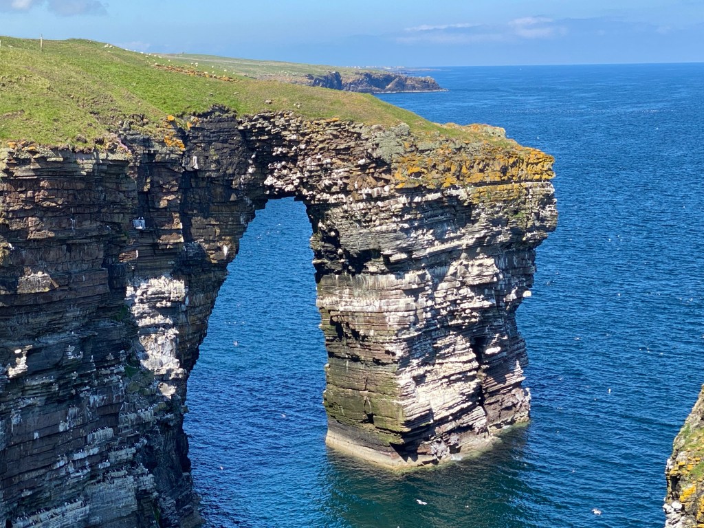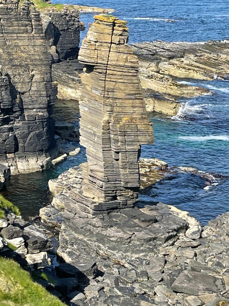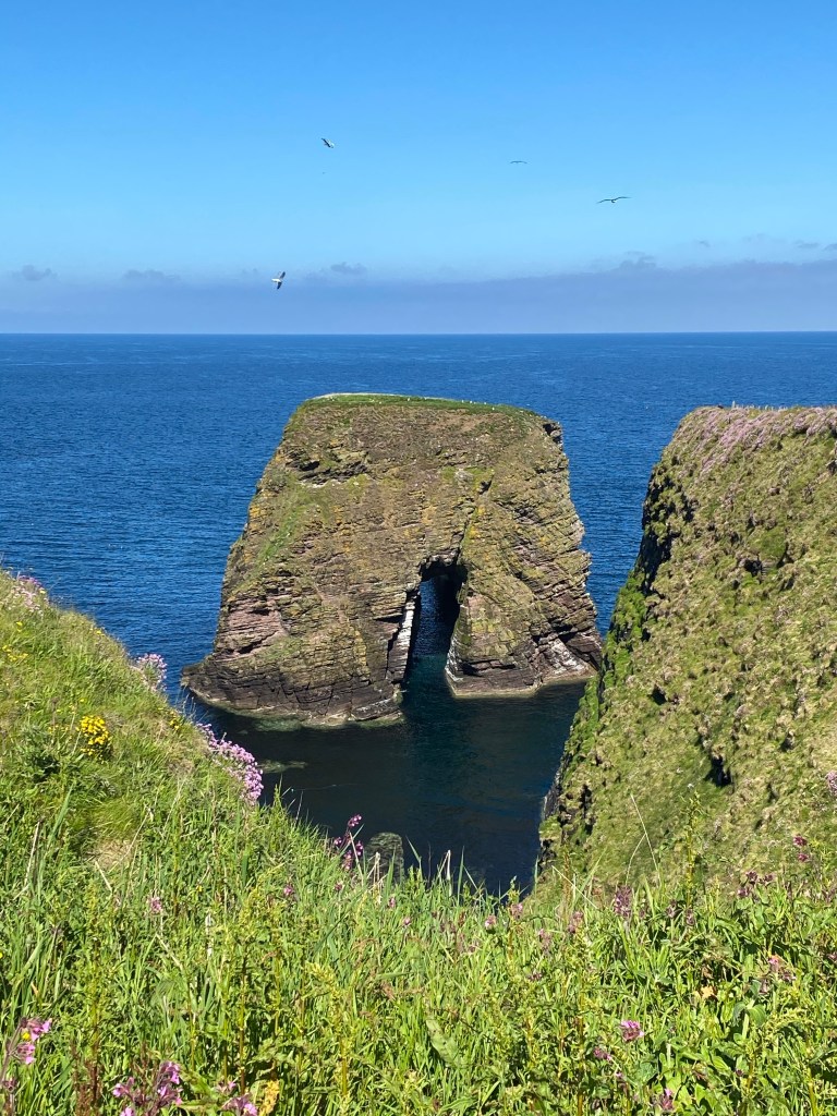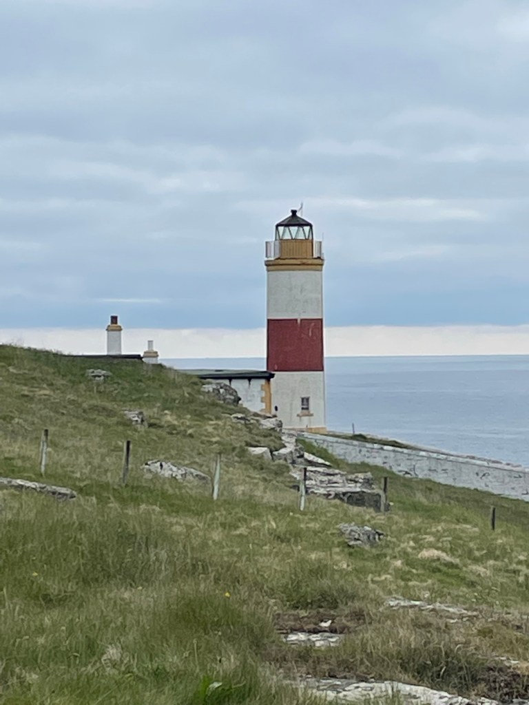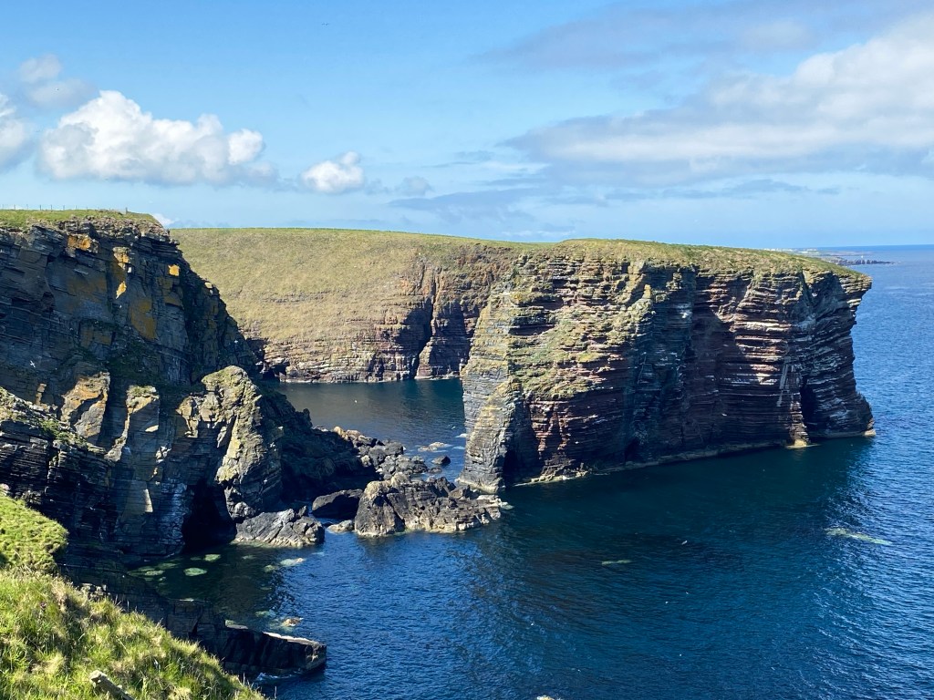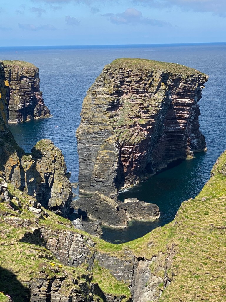 We rejoined the coast at Skirza Harbour and passed many more geos and stacks on the way to Duncansby Head and it’s lighthouse. By now we could see John O’ Groats in the distance.