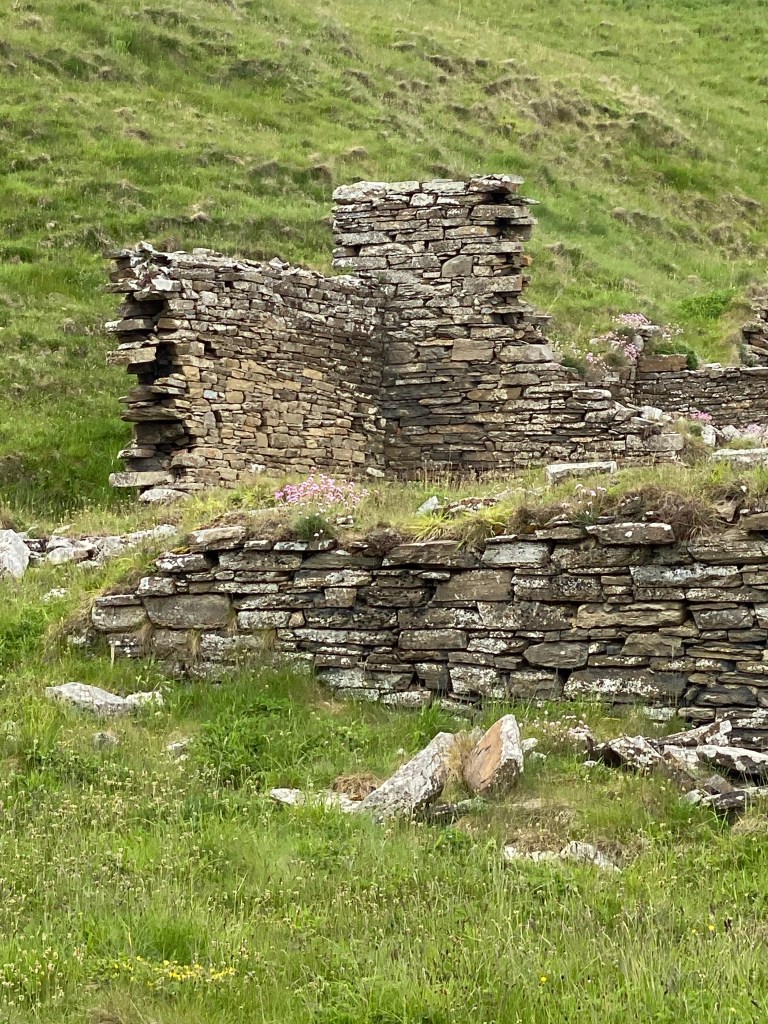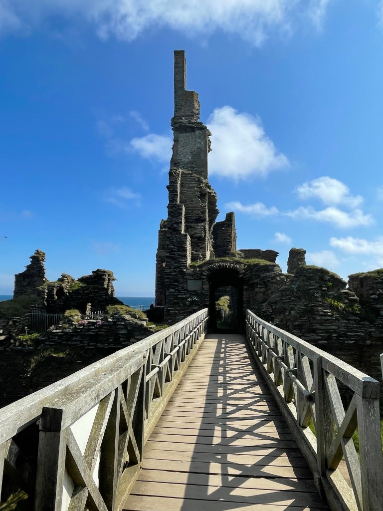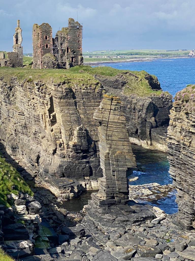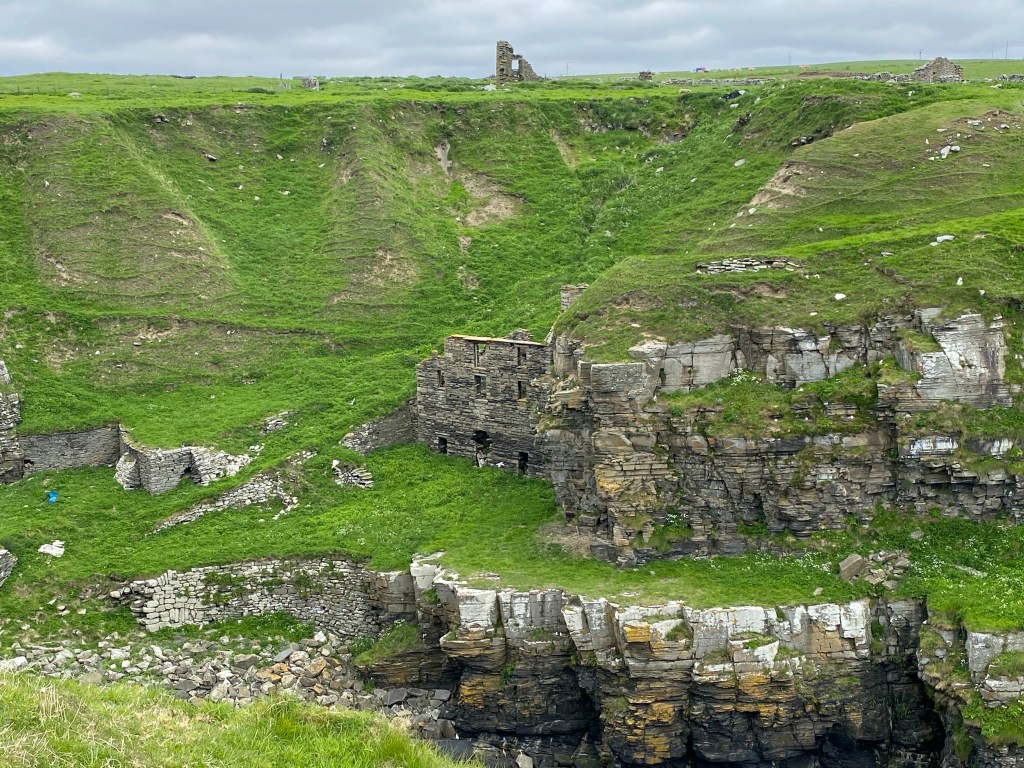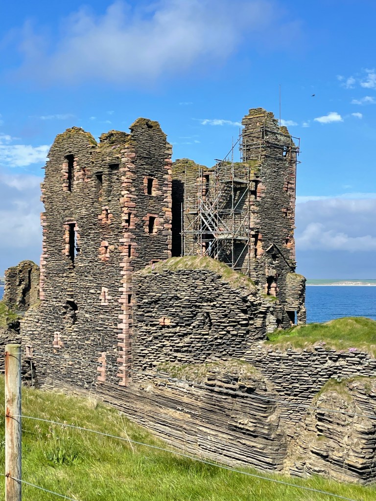 We passed the remains of Bucholly Castle perched precariously on a stack, before reaching Freswick Bay and its castle which is now a family home.