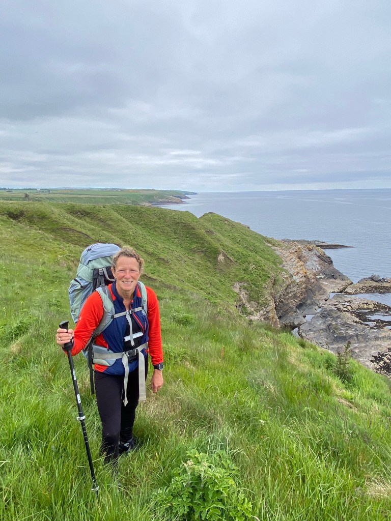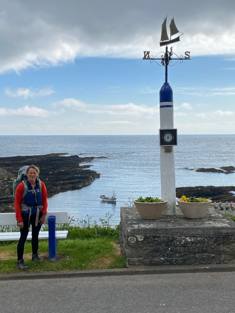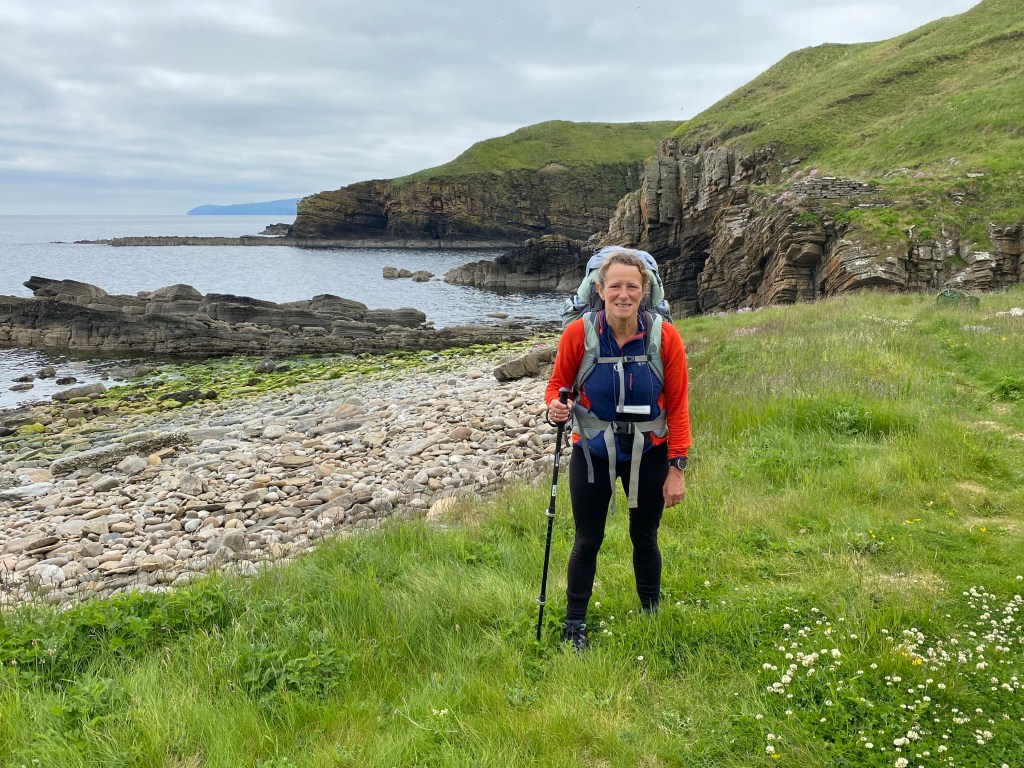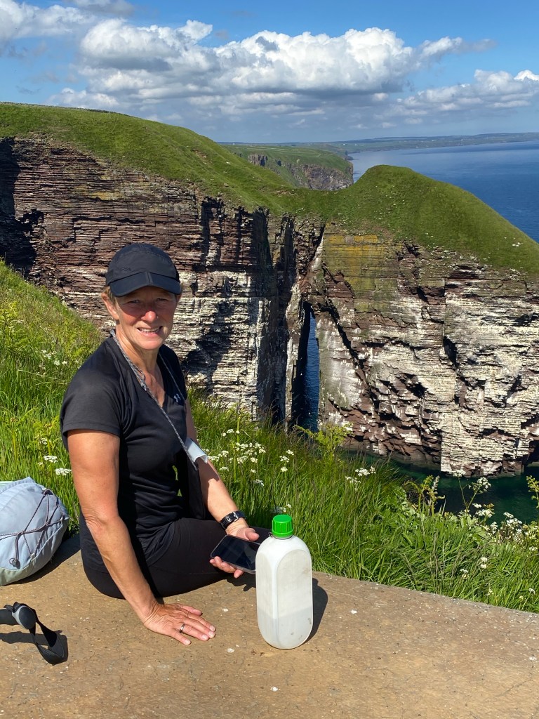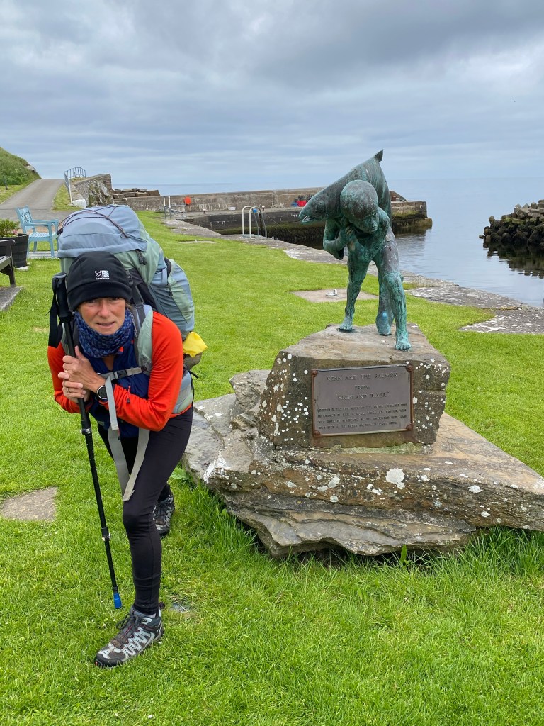 As we were dropping down to Helmsdale we stopped to chat to a lady who was sat outside her house, whale spotting, she had seen two minky whales 10 minutes earlier, through her telescope. She was a wildlife expert and told us about all of the whales and dolphins to look out for between Helmsdale and JOG and how to identify golden and white eagles. She also told us to look out for adders on the path ahead, not something Lynn wanted to hear about.
