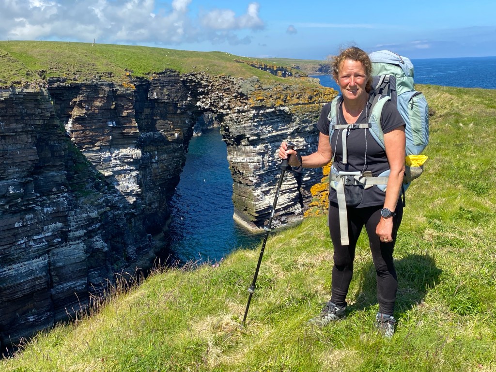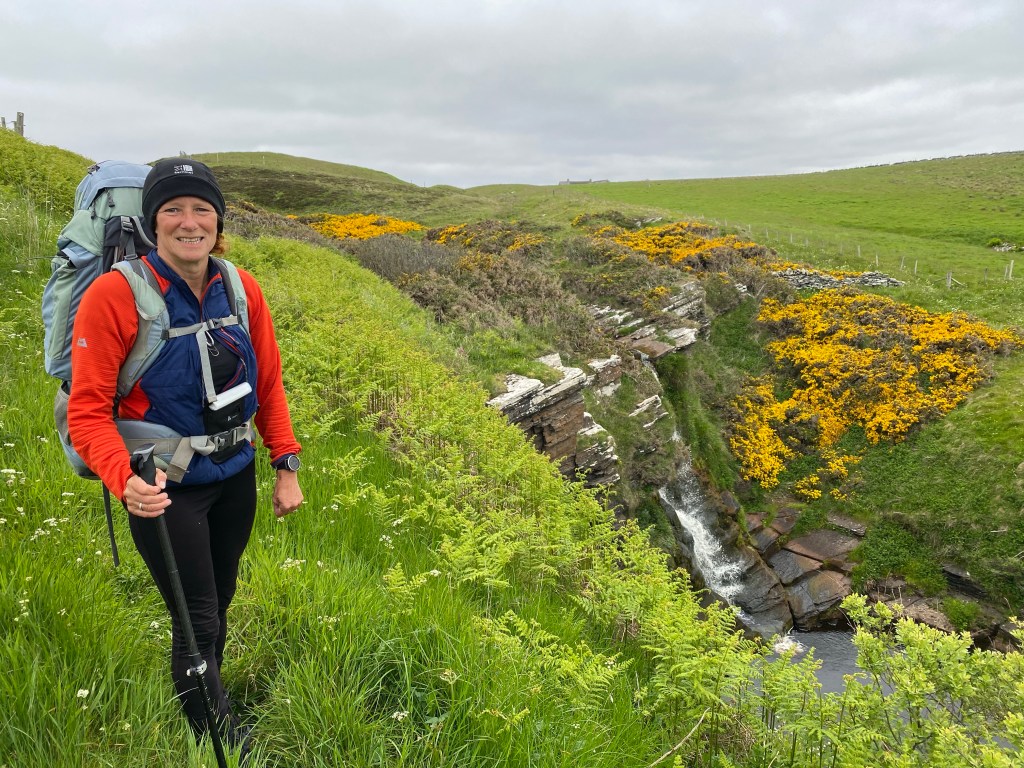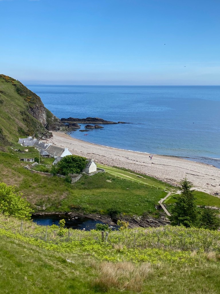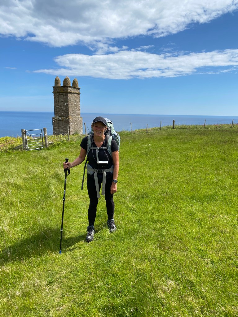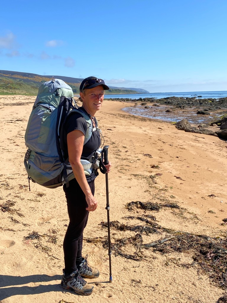 As we were dropping down to Helmsdale we stopped to chat to a lady who was sat outside her house, whale spotting, she had seen two minky whales 10 minutes earlier, through her telescope. She was a wildlife expert and told us about all of the whales and dolphins to look out for between Helmsdale and JOG and how to identify golden and white eagles. She also told us to look out for adders on the path ahead, not something Lynn wanted to hear about.