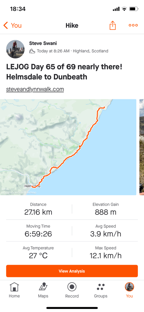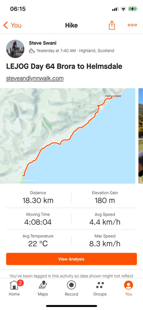 A much easier walk in terms of terrain and distance. Walking LEJOG we had done JOG to Wick in one long day. We decided several weeks ago we would like to savour the last couple of days and added an extra day to our schedule and split the walk at Keiss.