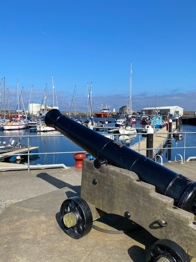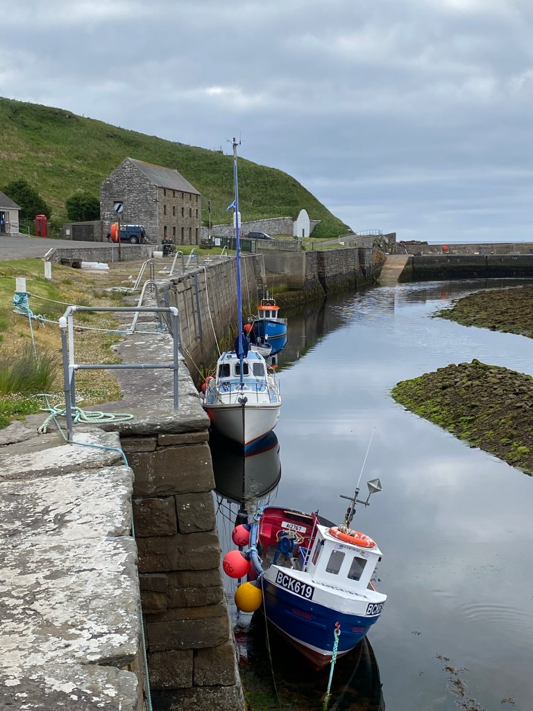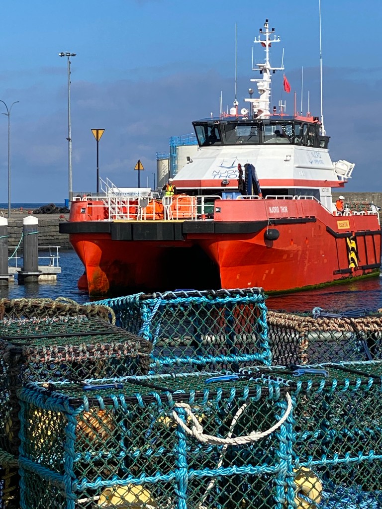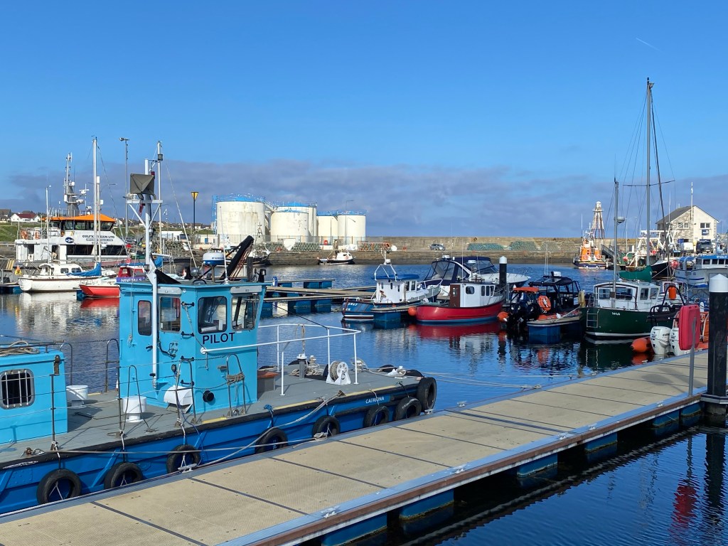 The harbour of Wick is thriving, still a working fishing port but also servicing the offshore wind farms.