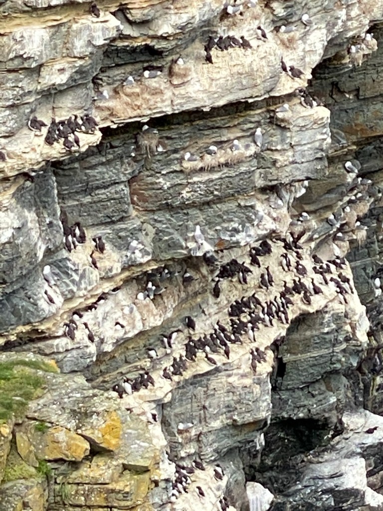 Our senses were constantly assaulted by the sight, sound and smell of large gull and guillemot colonies nesting on the ‘geo’ cliffs inlets.