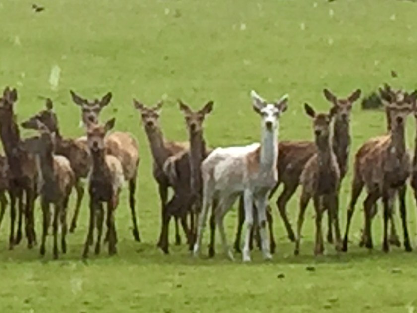 Another day on the A9 and the first day with some long climbs but we were excited by our first roundabout. We eagerly anticipate traffic lights. Light showers again today but milder as we left Caithness and entered Sutherland. The only deer we saw today was roadkill so no cute deer photos today but Lynn found a friend who, unlike Steve, gave her flowers.