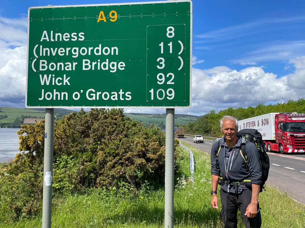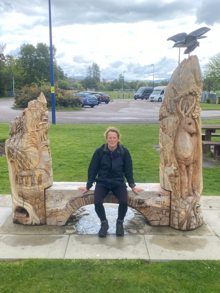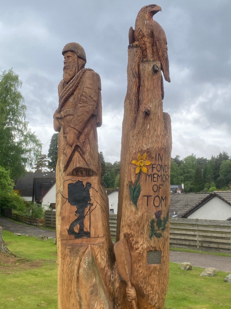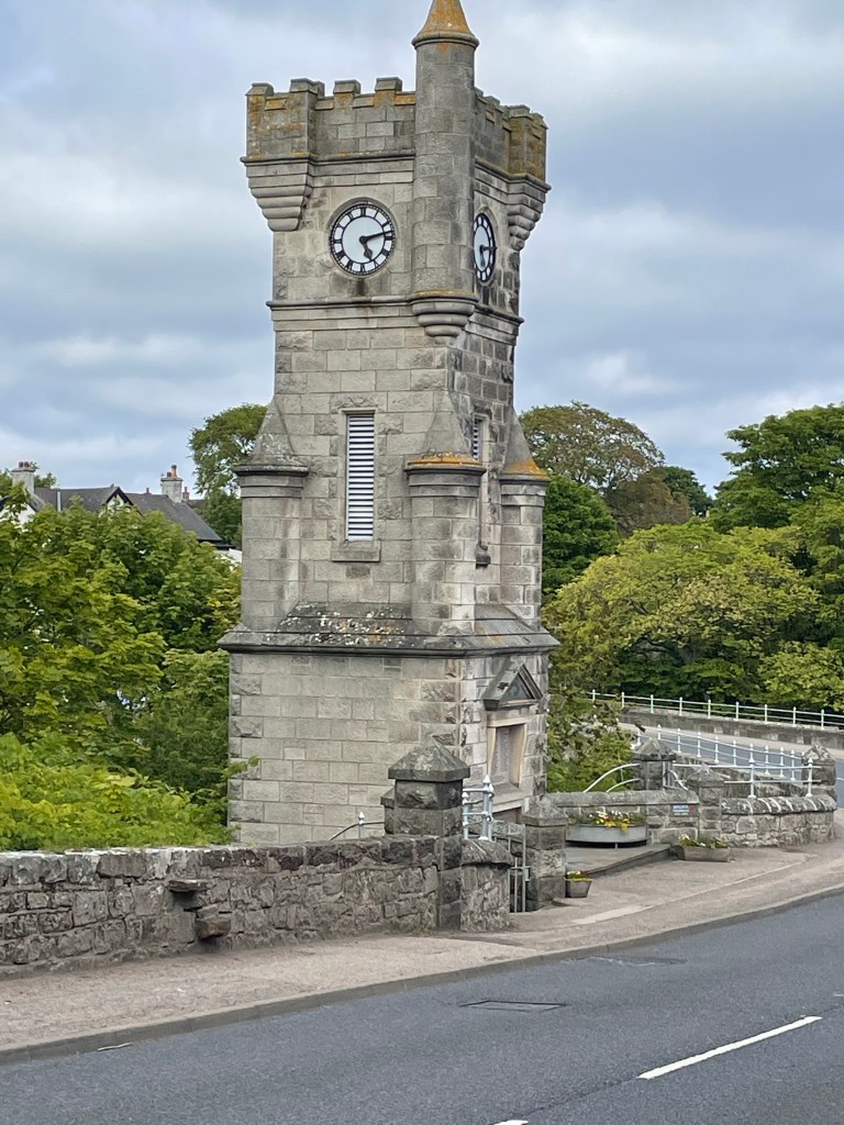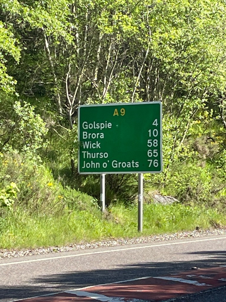 The mornings walk was dominated by the Duke of Sutherland, his 30 metre statue looking down on us from top of Ben Bhraggie mountain. The 1st Duke was clearly very aware of his own importance although he got a mixed press for his role in the Highland clearances. Many families were moved from their mixed farms in the Highlands to make way for more profitable sheep farming. The evictions prompted some families to emigrate in particular to Canada. The Canadian whisky taster from Halifax, Nova Scotia we met at the hostel in Delwinnie had traced his family ancestry back to Scots who emigrated as a result of the clearances. A statue we will see in Helmsdale tomorrow depicts a fleeing family.