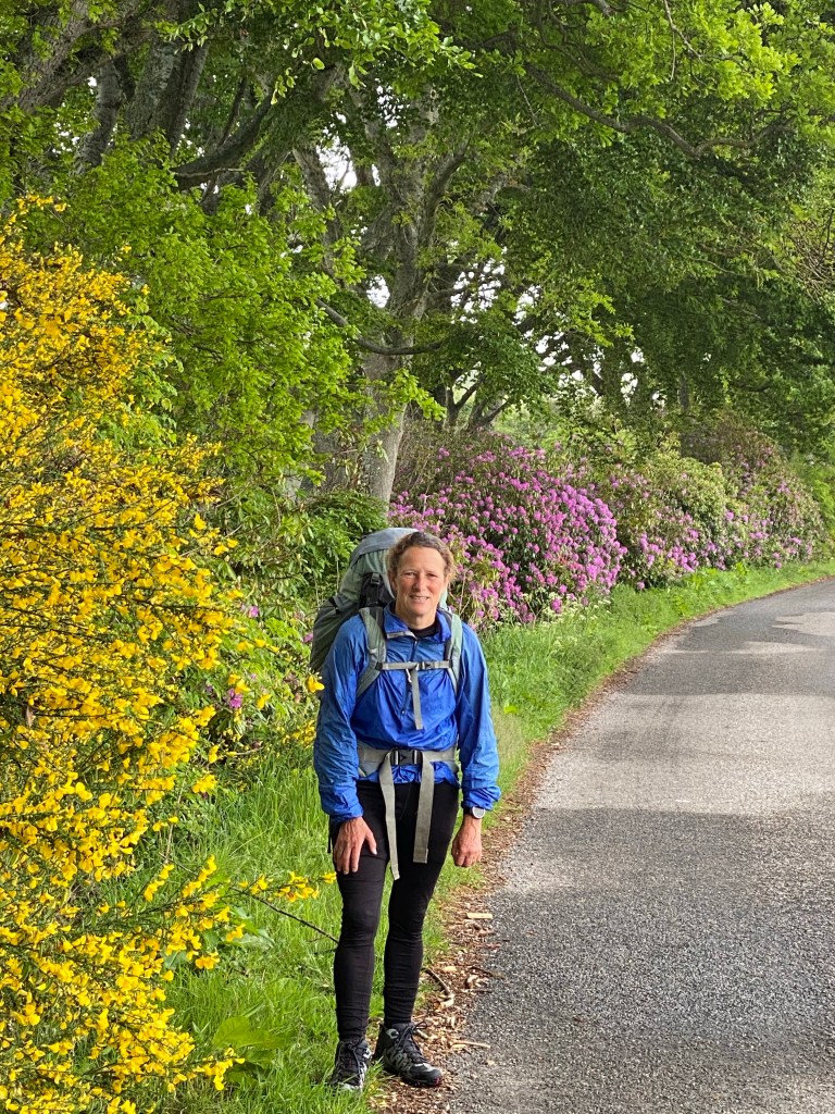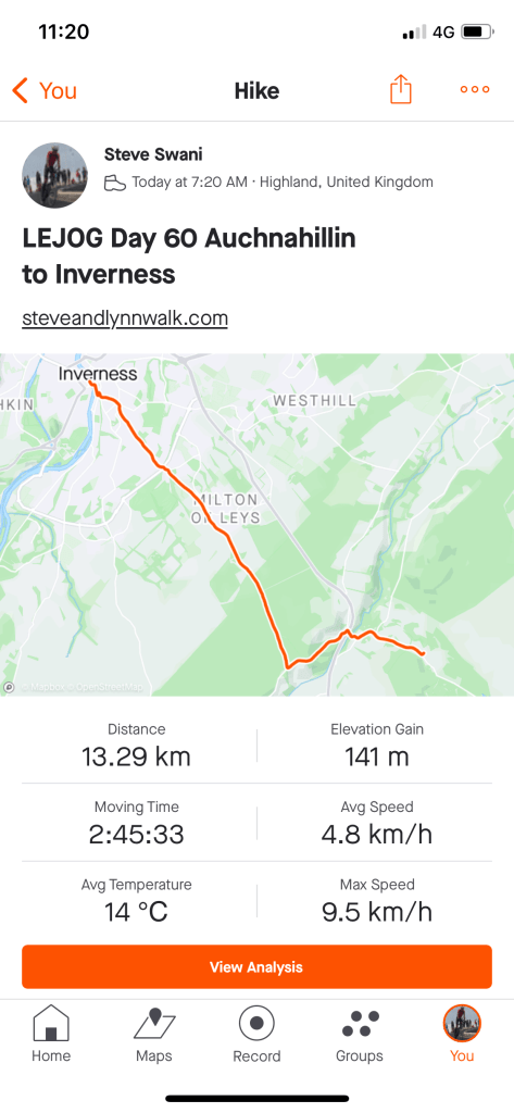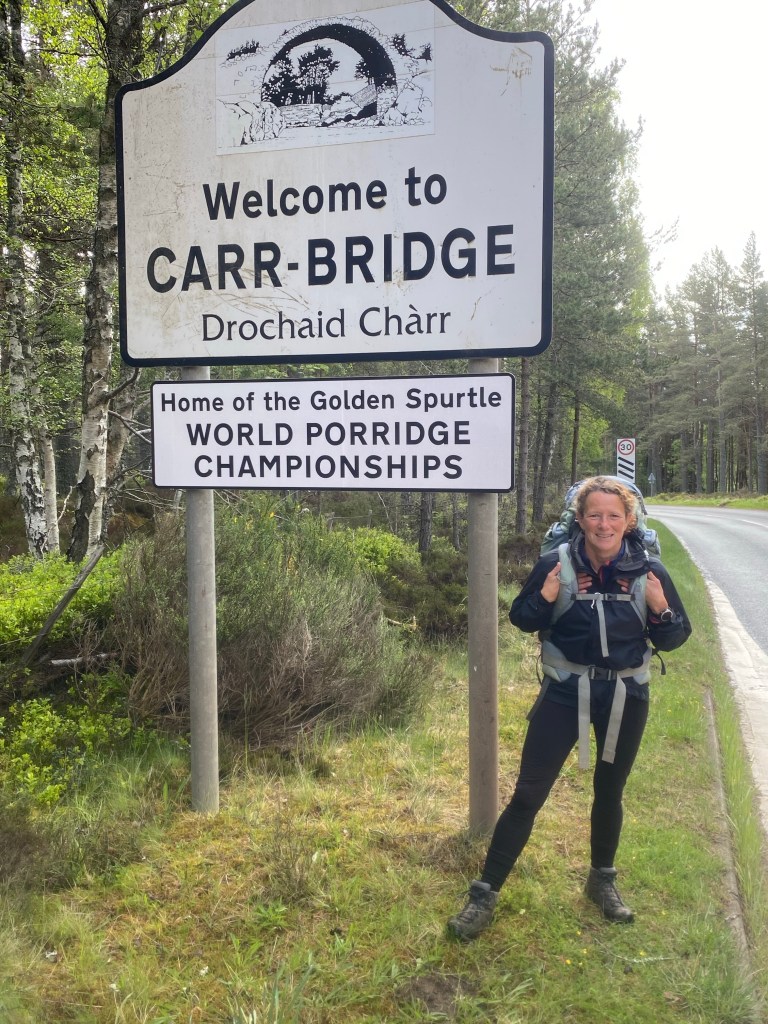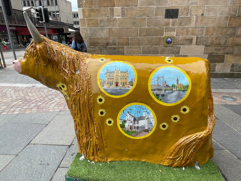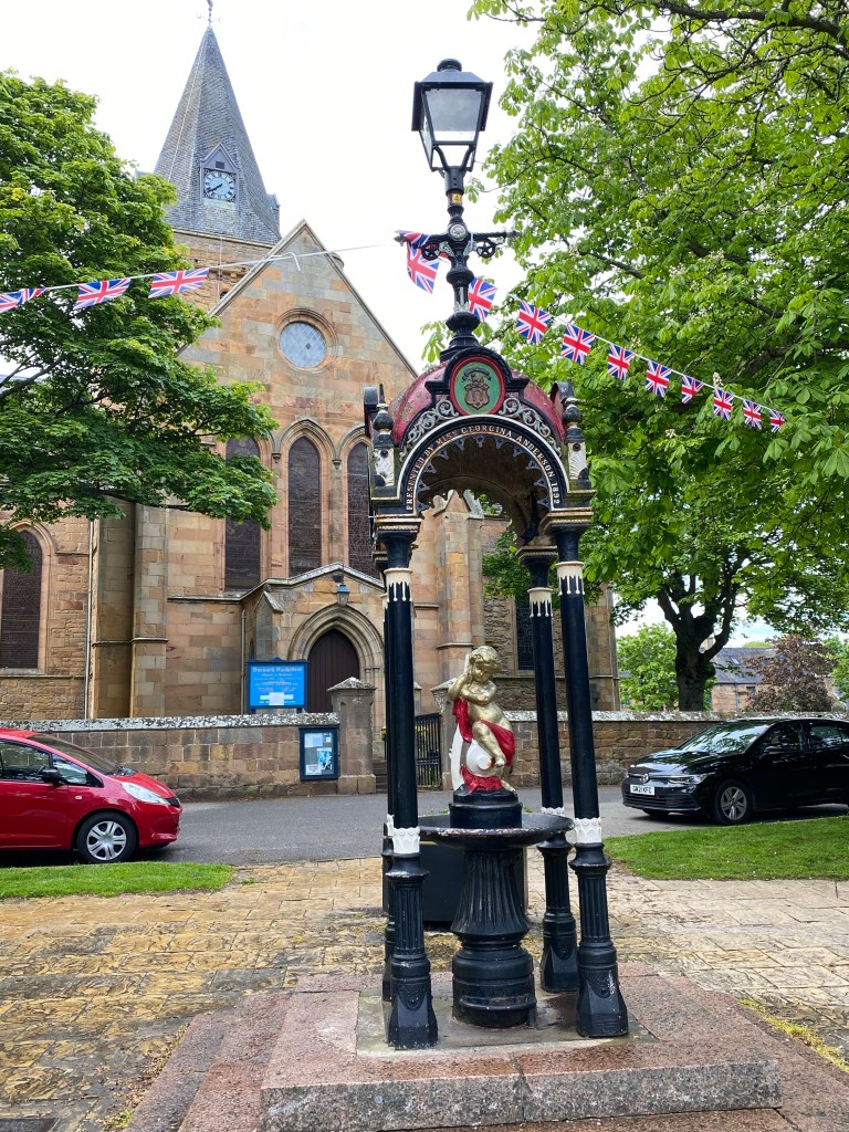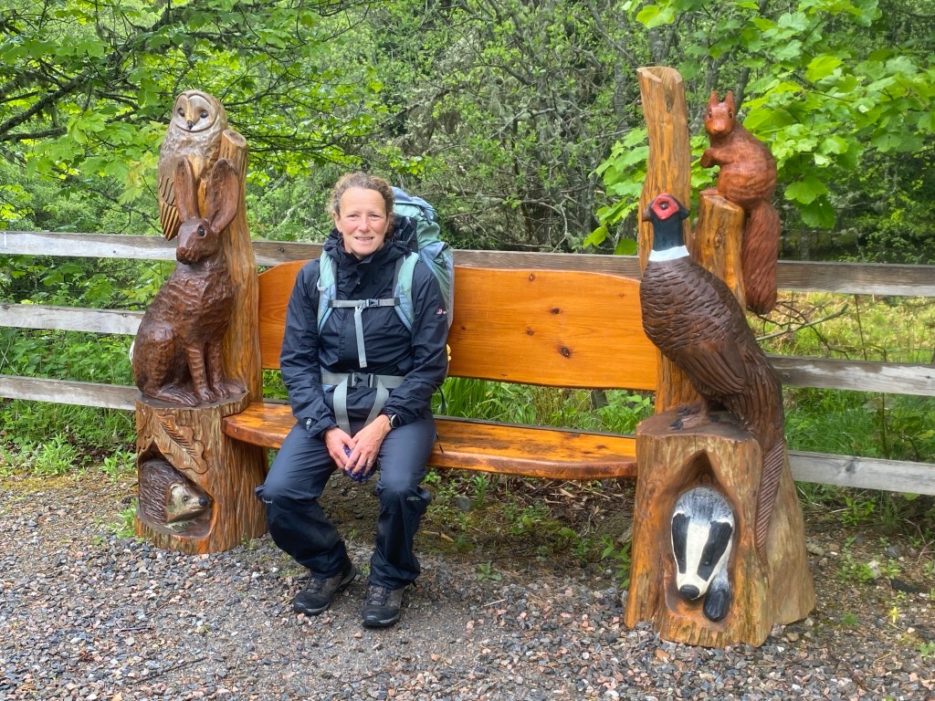 The mornings walk was dominated by the Duke of Sutherland, his 30 metre statue looking down on us from top of Ben Bhraggie mountain. The 1st Duke was clearly very aware of his own importance although he got a mixed press for his role in the Highland clearances. Many families were moved from their mixed farms in the Highlands to make way for more profitable sheep farming. The evictions prompted some families to emigrate in particular to Canada. The Canadian whisky taster from Halifax, Nova Scotia we met at the hostel in Delwinnie had traced his family ancestry back to Scots who emigrated as a result of the clearances. A statue we will see in Helmsdale tomorrow depicts a fleeing family.