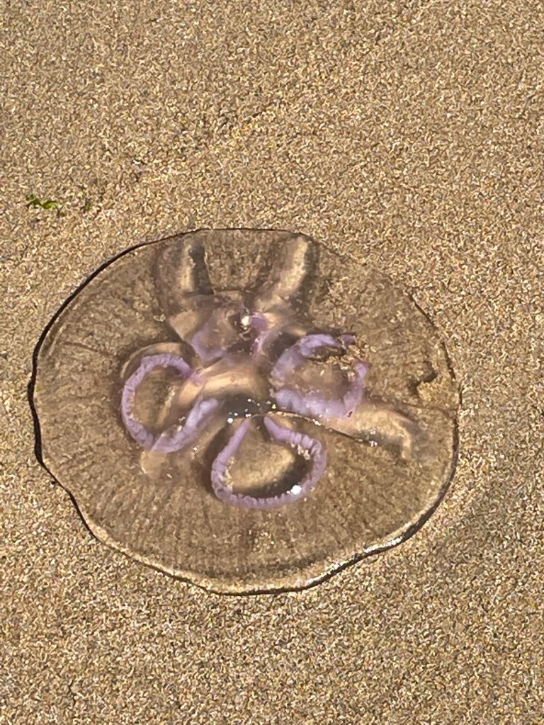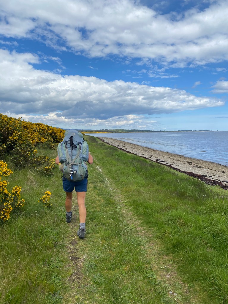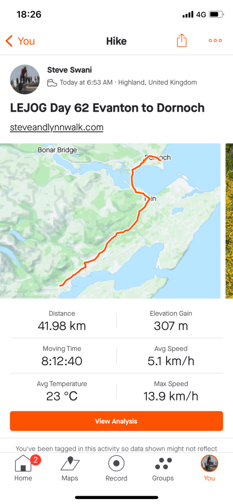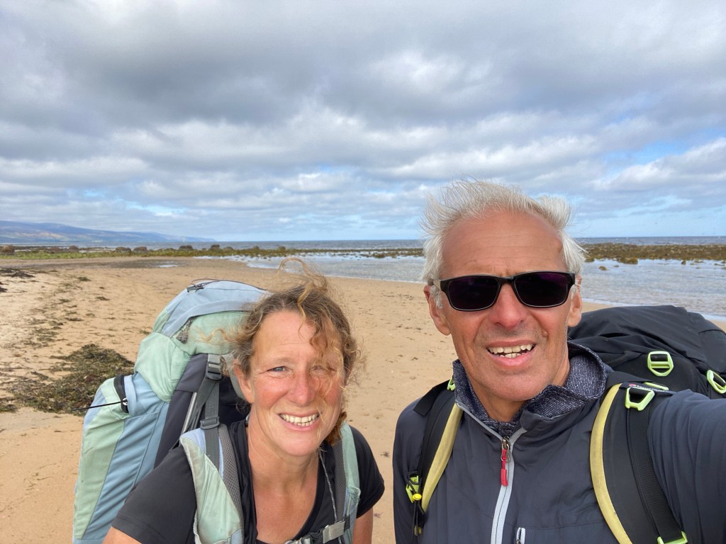 We left Loch Fleet over the A9 road bridge being careful not to tread on any sea otters before a multi terrain hike ending with a walk along the edge a golf course. On the golf course we were approached by a couple of Canadian golfers who had passed us in their car much earlier in the day and had interrupted their game to chat about our walk.