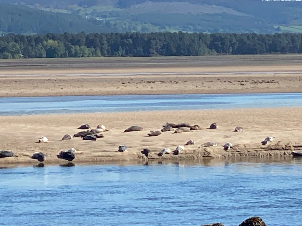 Loch Fleet didn’t disappoint with hundreds of Harbour Seals basking close to shore in the sunshine, mothers with their pups and huge bulls all making a lot of noise. We watched as one pup waddled back into the water egged on by it none to happy mother.